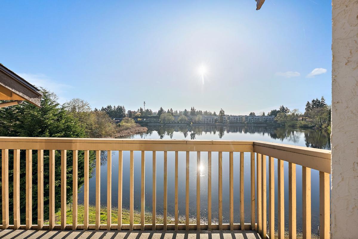 Step outside to your private balcony with additional storage and take in the peaceful lake views. This top-floor unit also includes a reserved carport space.