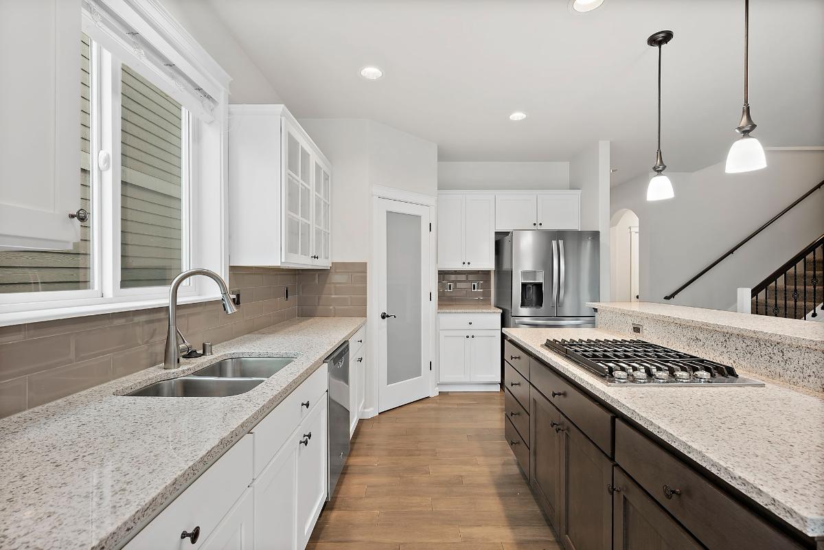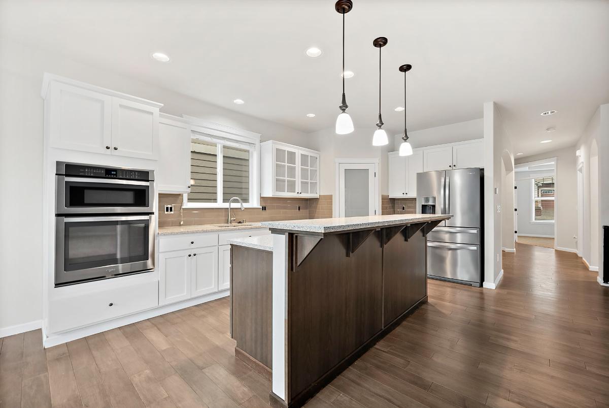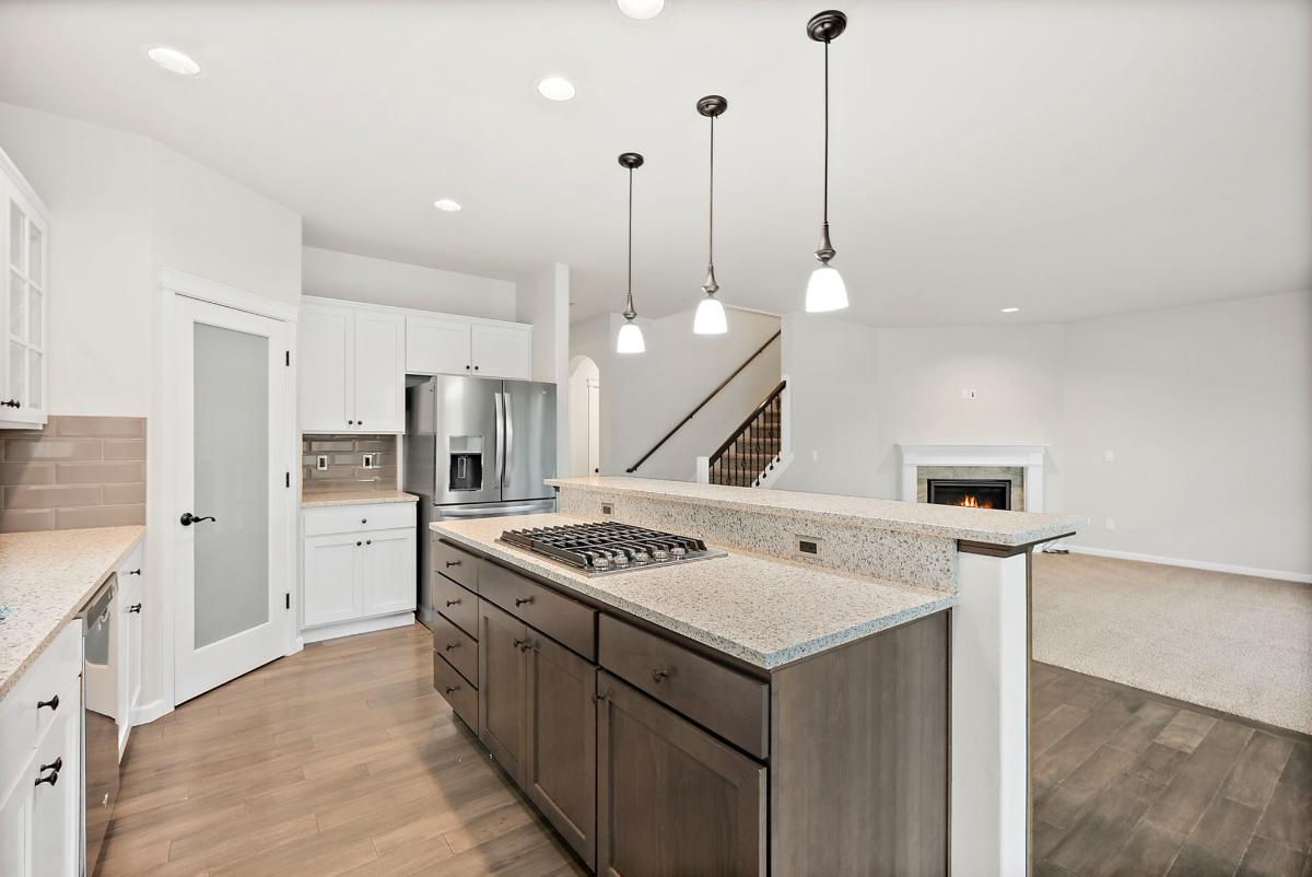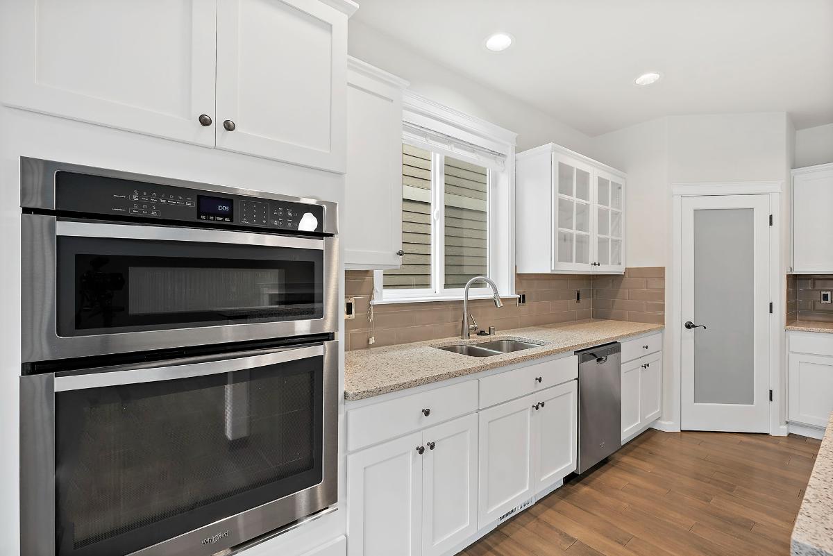 The main floor features a dedicated office with French doors — perfect for remote work or a private study — along with a warm and inviting living area centered around a gas fireplace. The gourmet kitchen is a true showstopper, equipped with a gas range, double ovens, generous pantry, and ample counter space ideal for entertaining or serious home cooking.