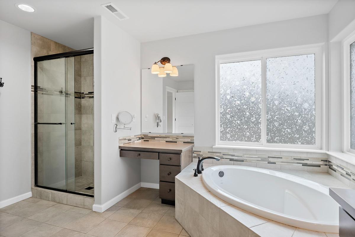 The primary suite is truly impressive, featuring custom lighting, a massive walk-in closet, and a luxurious 6-piece bathroom complete with a dedicated vanity/desk area — a rare and thoughtful touch.