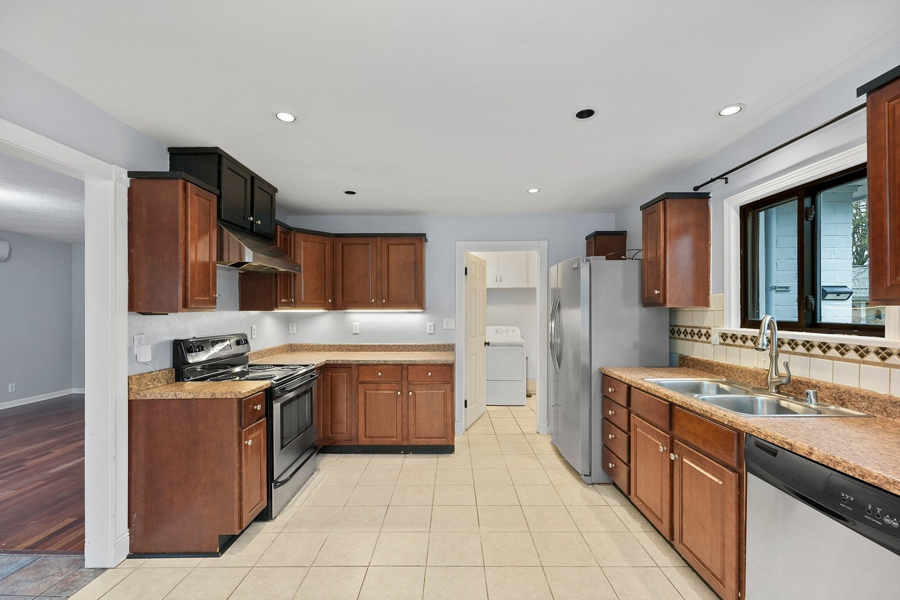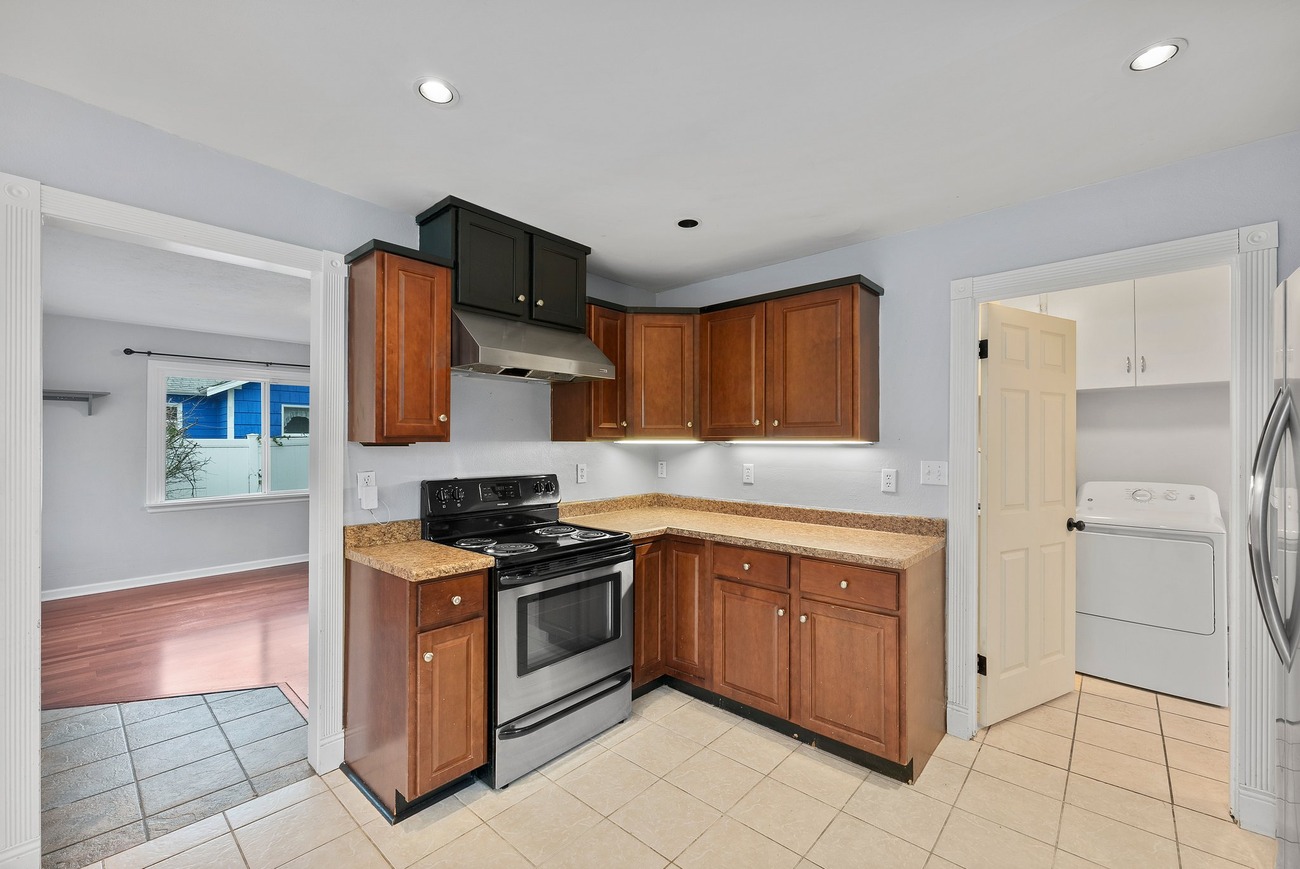 Welcome to this super cute and clean 1-1/2 story home in Tacoma, where modern updates meet original charm. With 1,242 sq ft of living space, this 3-bedroom, 1-bath residence features updated vinyl windows, a newer roof, and an updated kitchen with a cozy eating space—perfect for casual dining. The remodeled bathroom and large laundry room add to the functionality, while a mix of laminate flooring, tile, and carpet on the main floor overlays the original hardwoods, preserving a hint of the home's classic character.
